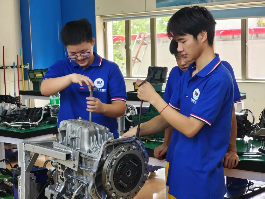 雨水顺着玻璃窗蜿蜒而下,模糊了窗外树叶的轮廓,却让实训室内的景象愈发清晰——那些专注的侧脸,那些沾着机油却依然灵活的手指。