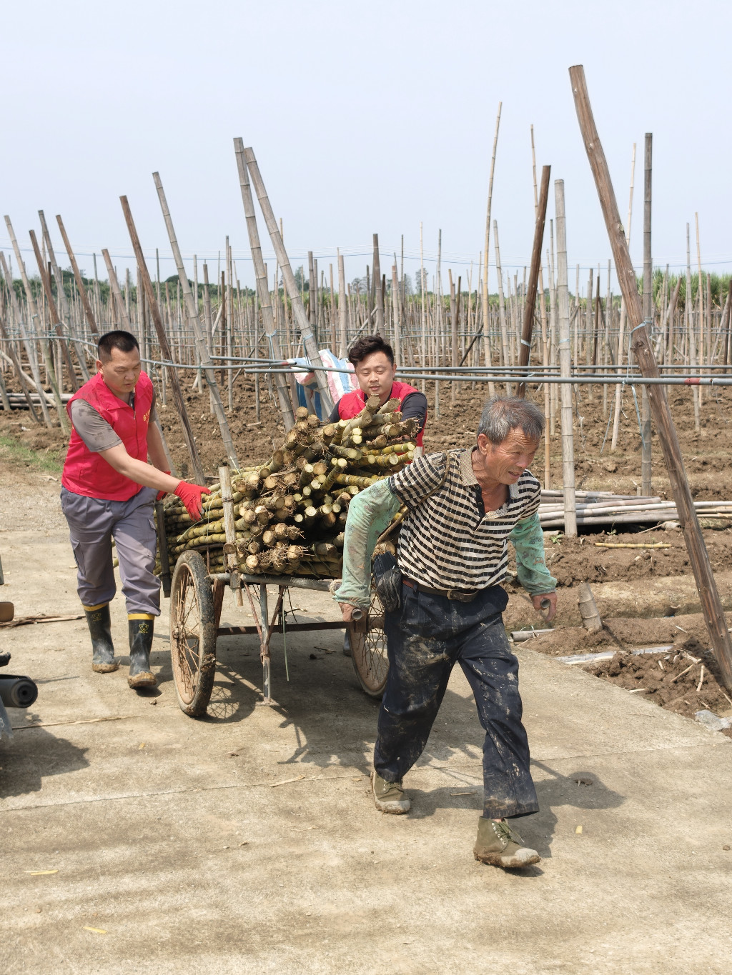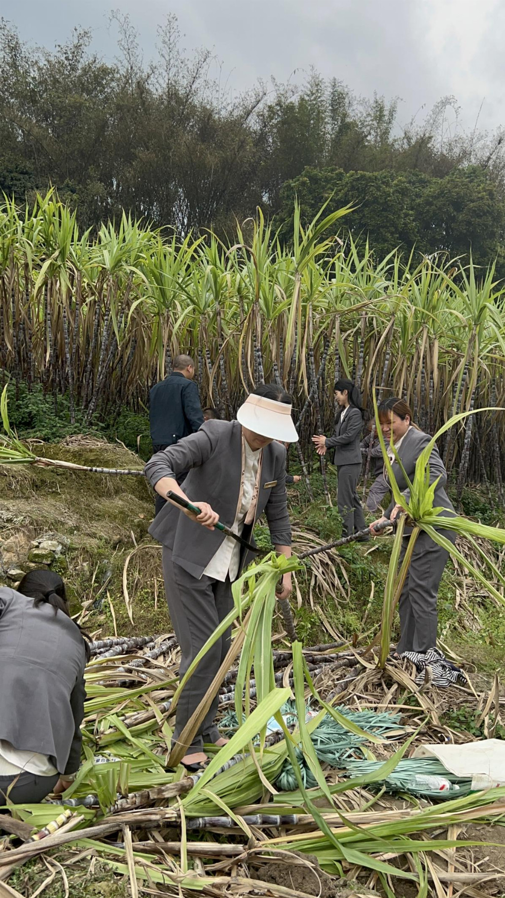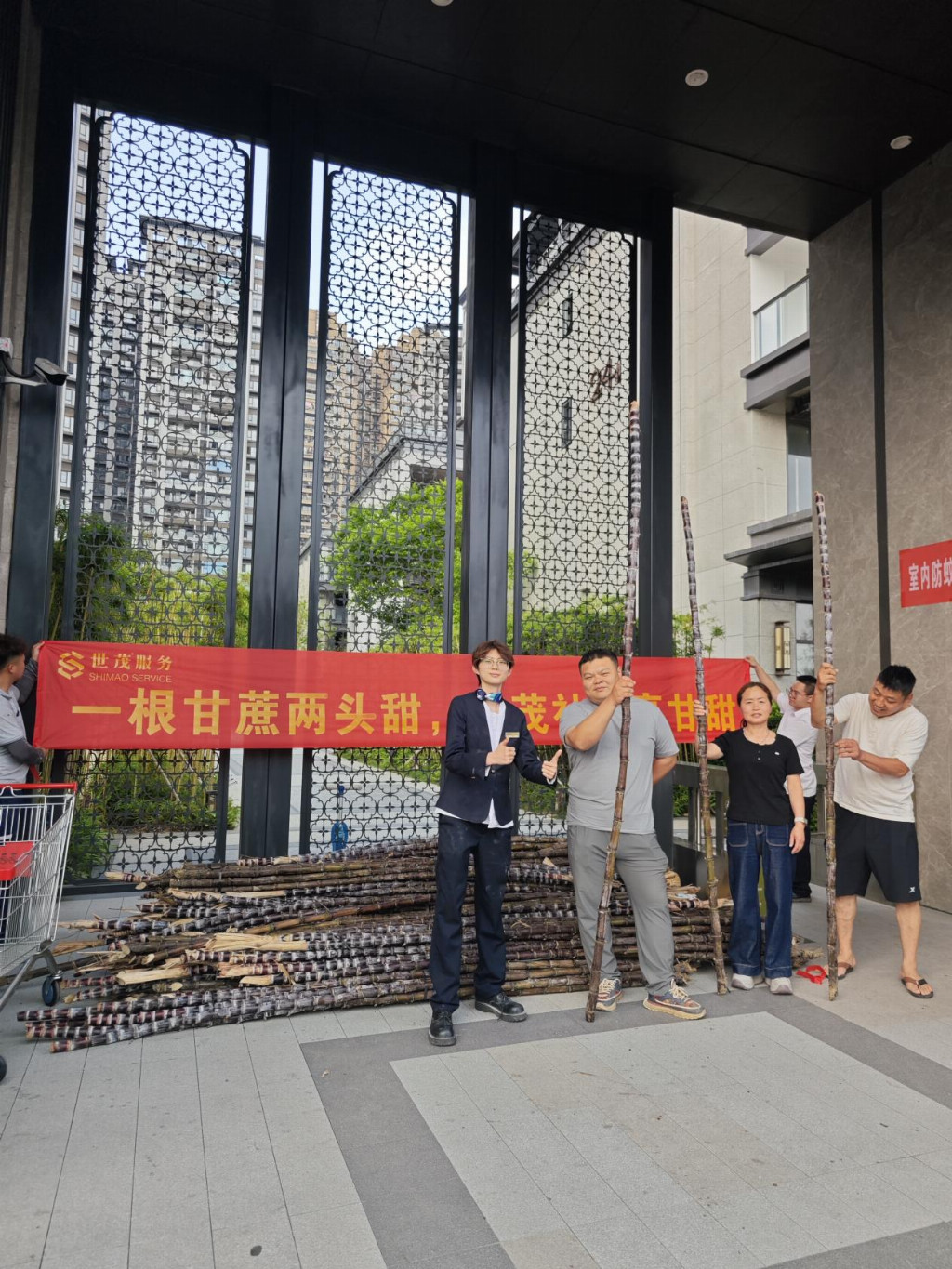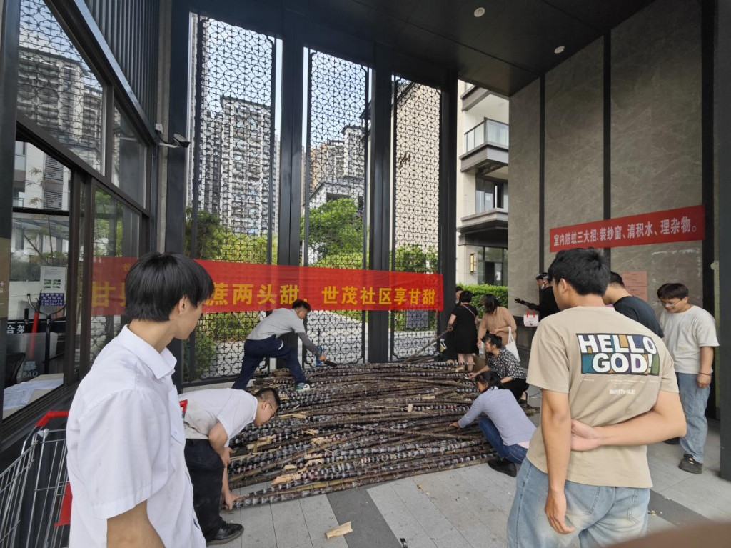 “甘蔗在地里多待一天,农户的心就揪着一天,我们得快!”世茂望德、世茂望樾、世茂望湖花园和世茂国风滨江等项目组成的“助农小分队”驱车奔赴南沙甘蔗地。烈日当空,物业团队挽袖上阵,与蔗农并肩劳作——砍蔗、去叶、捆绑、装车……汗水浸透衣衫,却无人停歇。从生疏到熟练,从烈日高悬到夕阳西下,田间地头流淌着默契与温情。整整一个上午,成捆甘蔗整齐码放,整装待发,奔赴小区。